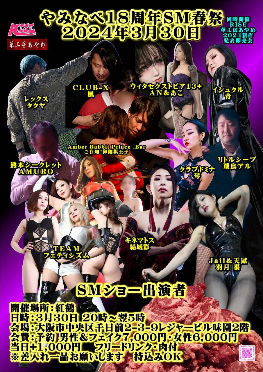 後は縄や鞭の練習してSMショーに出たい人の目標のSMショーイベントもやっています。